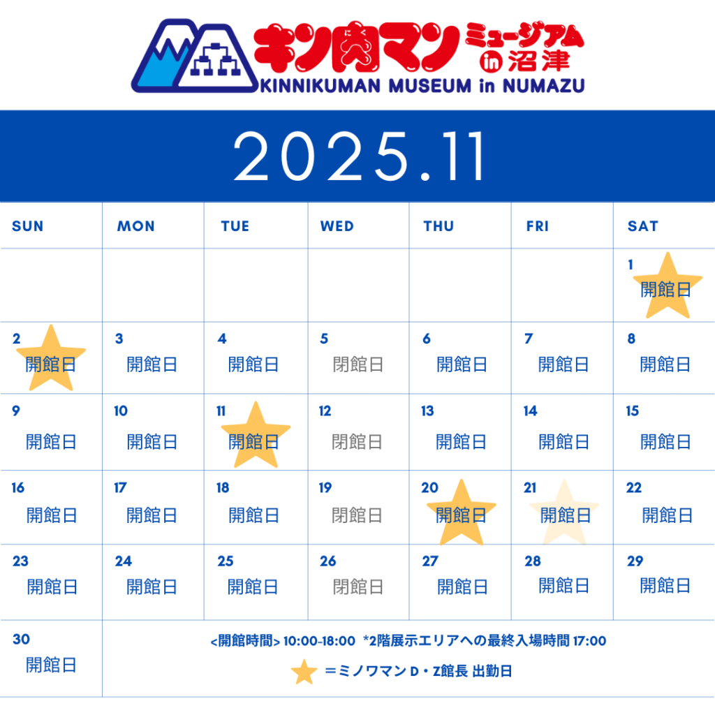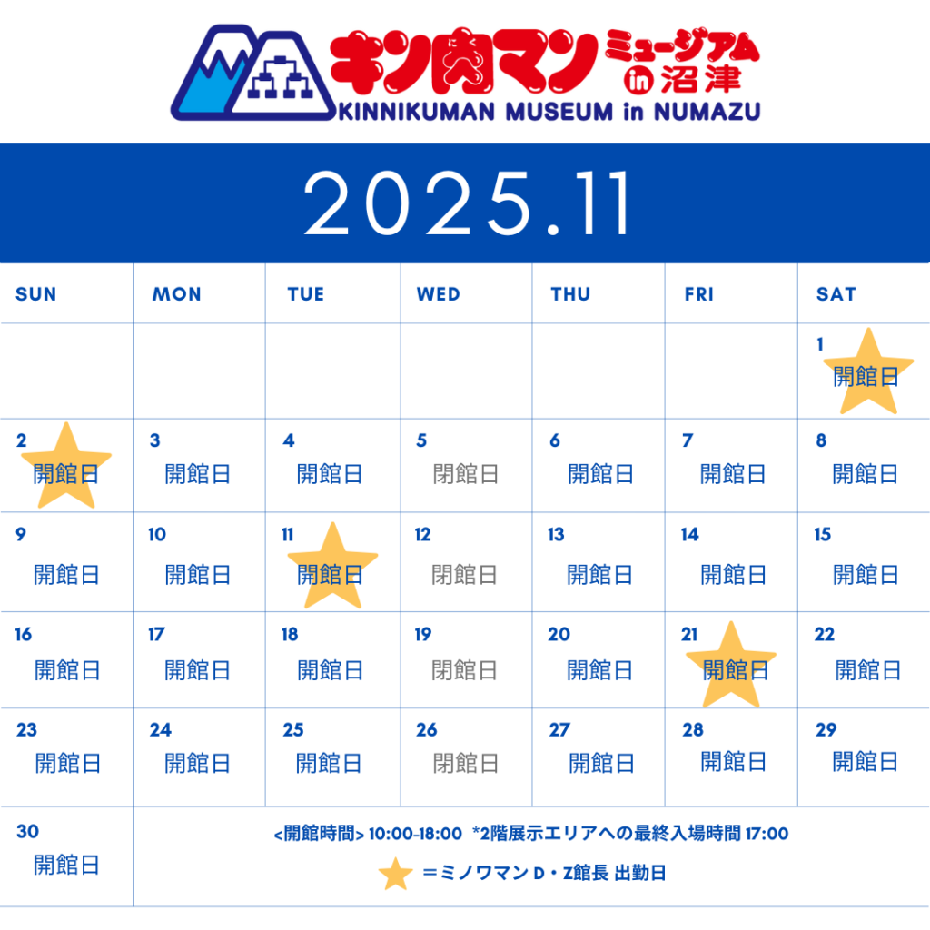 11月の施設開館日、及びミノワマンD・Z館長出勤日は、以下カレンダーのとおりの予定です。