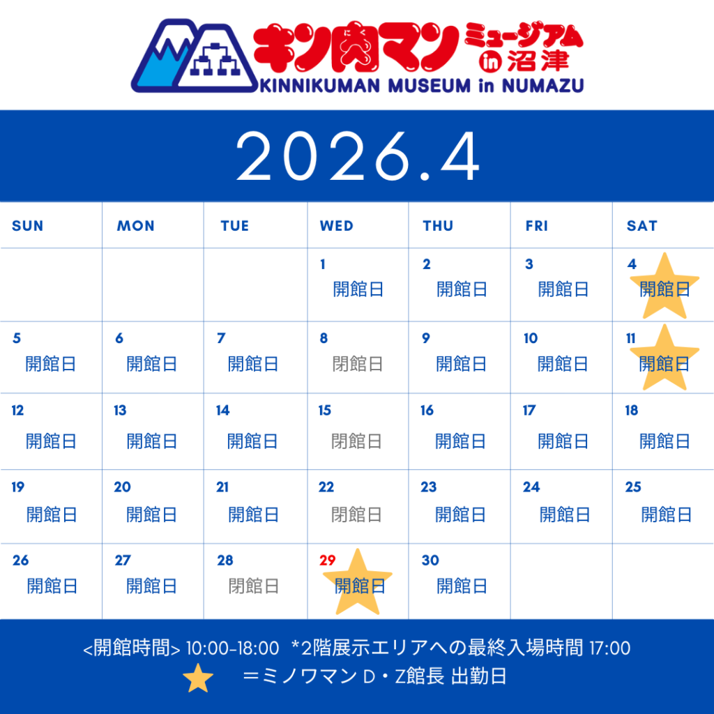 施設開館日・ミノワマンD・Z館長出勤日のご案内(4月)